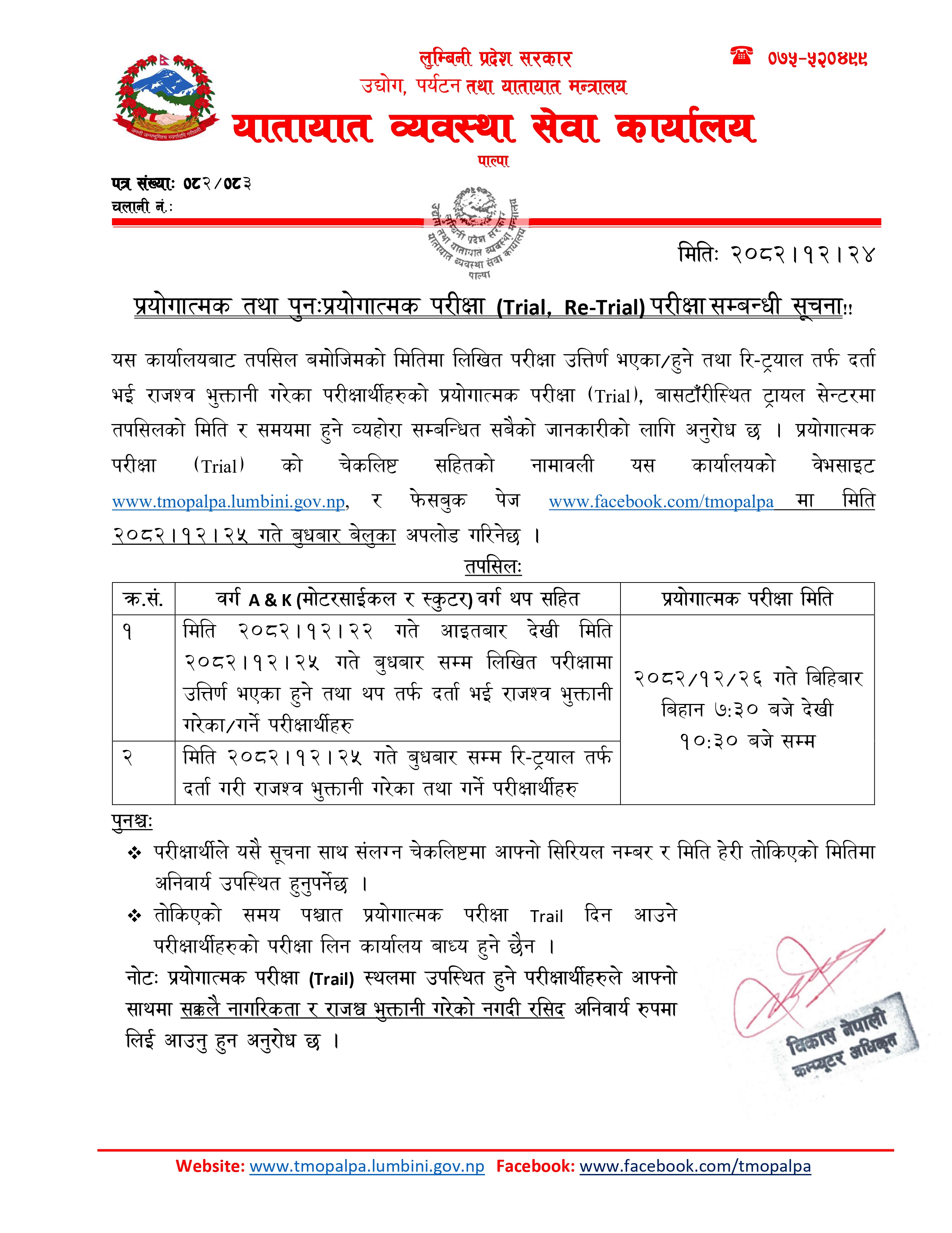 मिति 2082-12-23 गते सोमबार लिईएको लिखित परीक्षाको …